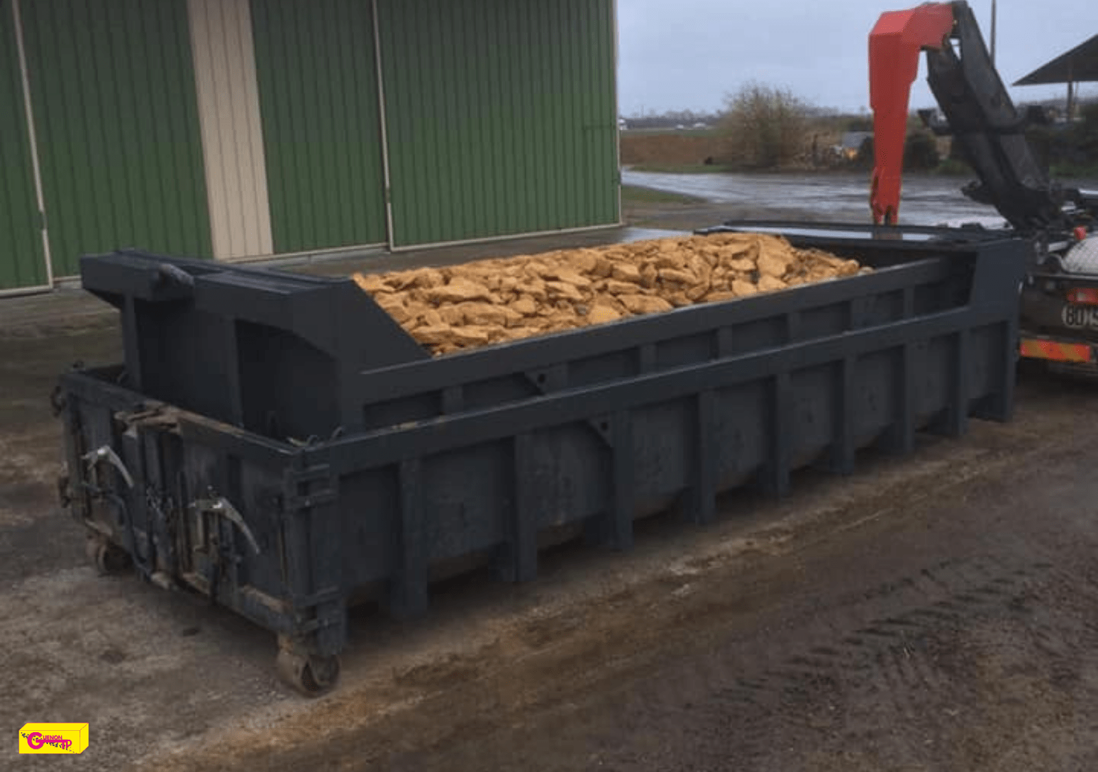 Nous pouvons également vous apporter la benne déjà remplie avec le matériau de votre choix (terre végétale, tout venant 0/31.5, GNT 0/20, sable à maçonner ou de tranchée…). à Voir service « vente de matériaux »