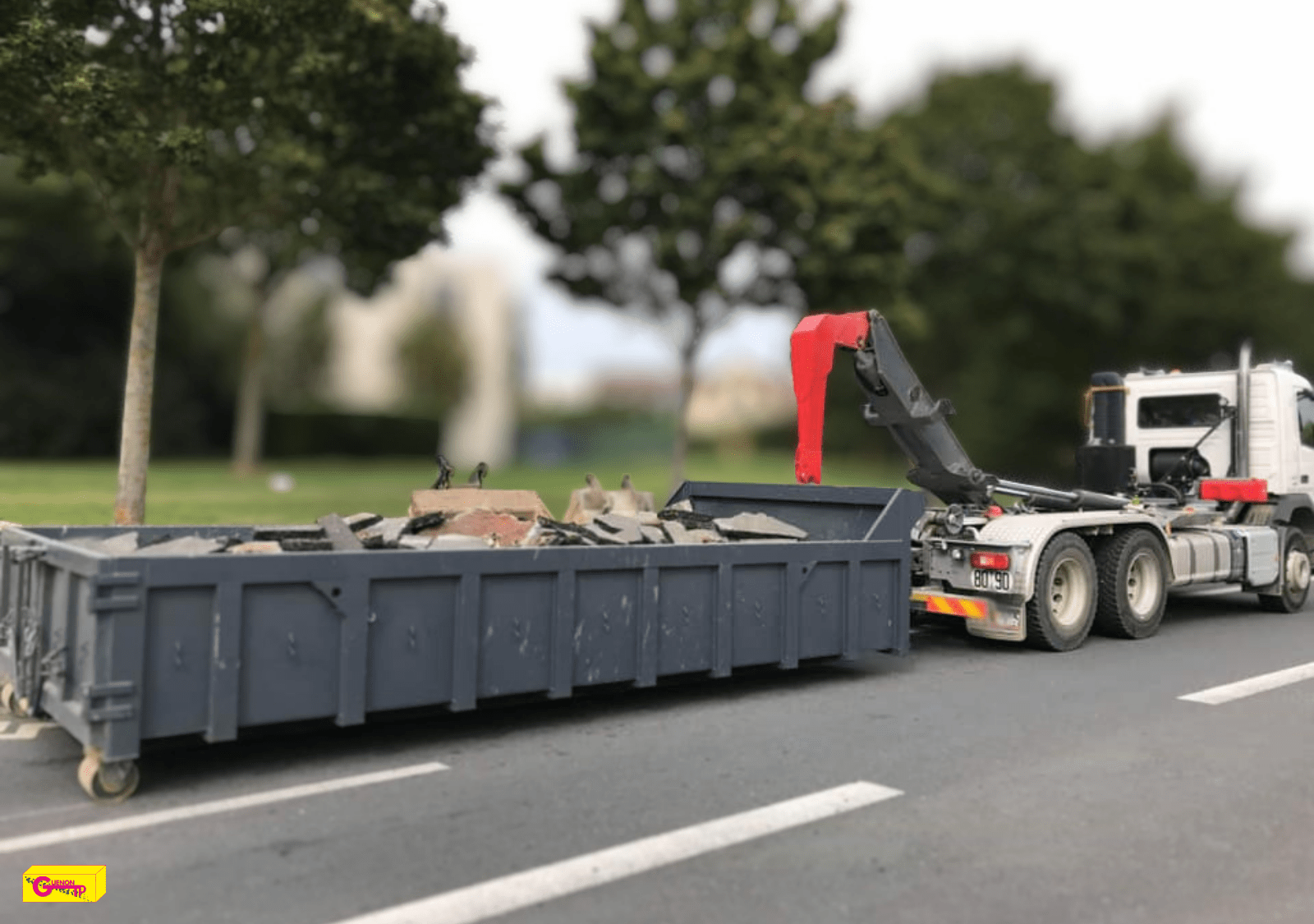 - Nous vous déposons la benne vide à l’endroit souhaité.
