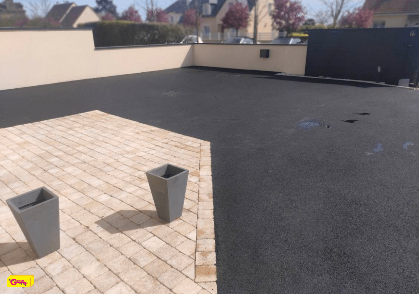 Afin de garantir la durabilité de votre enrobé, nous vous conseillons également d’éviter les manœuvres brutes (ripage sur place) et encore plus en cas de fortes chaleur, éviter de déposer des tables, chaises, échelles ou tout autre objet sur l’enrobé à chaud.